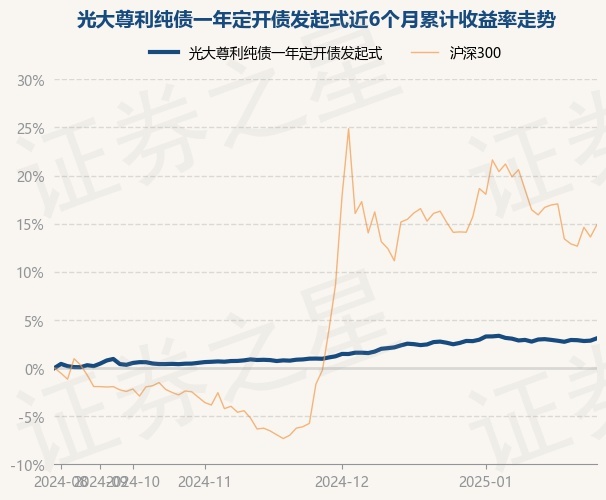 本站消息,1月27日,光大尊利纯债一年定开债发起式最新单位净值为1.0468元,累计净值为1.1006元,较前一交易日上涨0.24%。历史数据显示该基金近1个月上涨0.27%,近3个月上涨2.65%,近6个月上涨3.09%,近1年上涨5.99%。该基金近6个月的累计收益率走势如下图: